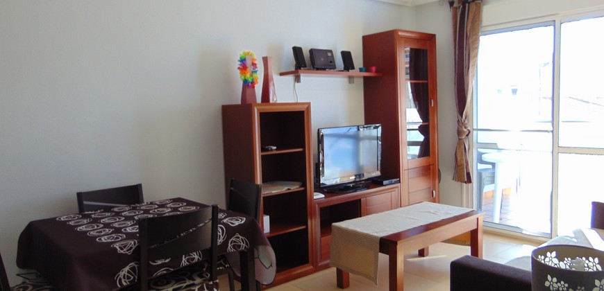 Torrevieja, Apartamento 2 dormitorios, situado a poca distancia de la playa, el puerto y el centro. Tiendas, restaurantes etc cerca. Apartamento amueblado y totalmente equipado con dos dormitorios, baño, sala de estar y comedor con cocina abierta, terraza y garaje. Aire acondicionado frío / caliente. Totalmente amueblado Nuevo edificio con ascensor